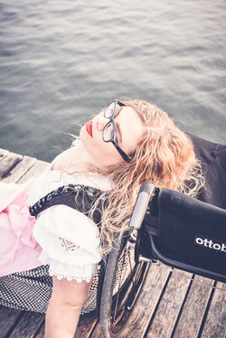Ella ist ein absolut herzlicher und positiver Mensch. Sie vermag jeden mit ihrer guten Laune und ihrer Lebensfreude anzustecken und dementsprechend hatten wir sehr viel zu lachen. Außerdem ist sie extrem fit; sie ist mit ihrem Rollstuhl schneller als ich! Sie geht mit ihrem Rollstuhl skaten, sowas kann ich nicht und konnte es auch nie. Außerdem hatte sie keine Probleme damit Dinge auszuprobieren. Die Ideen für die Bilder sprudelten nur so aus uns heraus und sie war absolut nicht zimperlich.